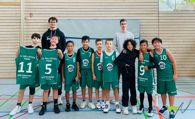 Die jüngsten 99ers eröffneten den Heimspieltag gegen den SV Möhringen. Das Team von Benni Wieser und Robin Leiblein wollte gleich zeigen, warum es zu den besten Teams in der Liga gehört. Der Start verlief zwar etwas zäh, doch sobald der erste Wurf fiel, platzte der Knoten. Mit schnellen Pässen und mutigen Abschlüssen erspielten sich die Nellinger Punkt um Punkt, während Möhringen noch mithielt, drehten die 99ers ab dem dritten Achtel richtig auf. Zur Pause stand ein deutlicher 19-Punkte-Vorsprung auf der Anzeigetafel. Nach der Halbzeit kam jedoch Spannung auf. Möhringen stellte sich besser auf das Spiel ein, verteidigte aggressiver und traf jetzt hochprozentig. Der komfortable Vorsprung schmolz bedenklich dahin – fast kam es zum Ausgleich! Doch anstatt nervös zu werden, bewiesen die jungen 99ers echte Nervenstärke. Mit starkem Teamplay, kluger Defense und viel Herz holten sie sich das Momentum zurück und brachten den knappen, aber verdienten Sieg schließlich über die Ziellinie. Ein packendes Spiel und ein Beweis, dass diese U12 nicht nur Talent, sondern auch echten Kampfgeist hat.